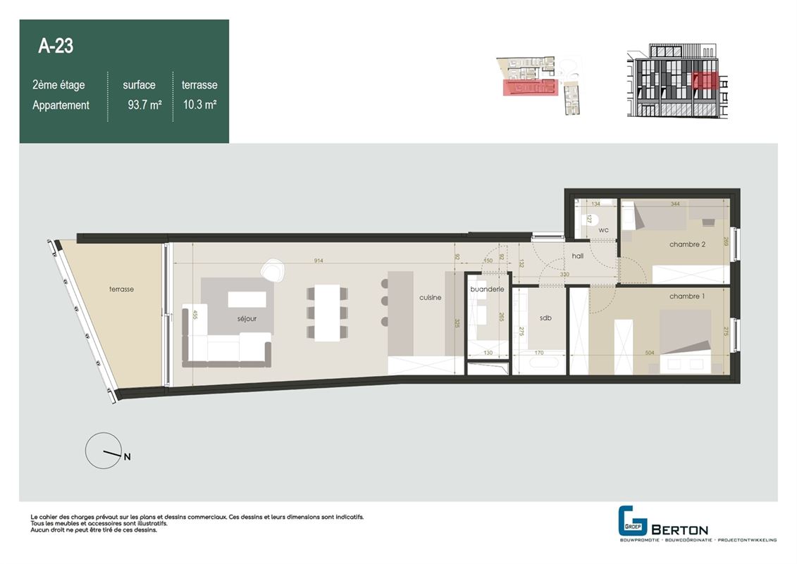 Surface totale : 105 m²