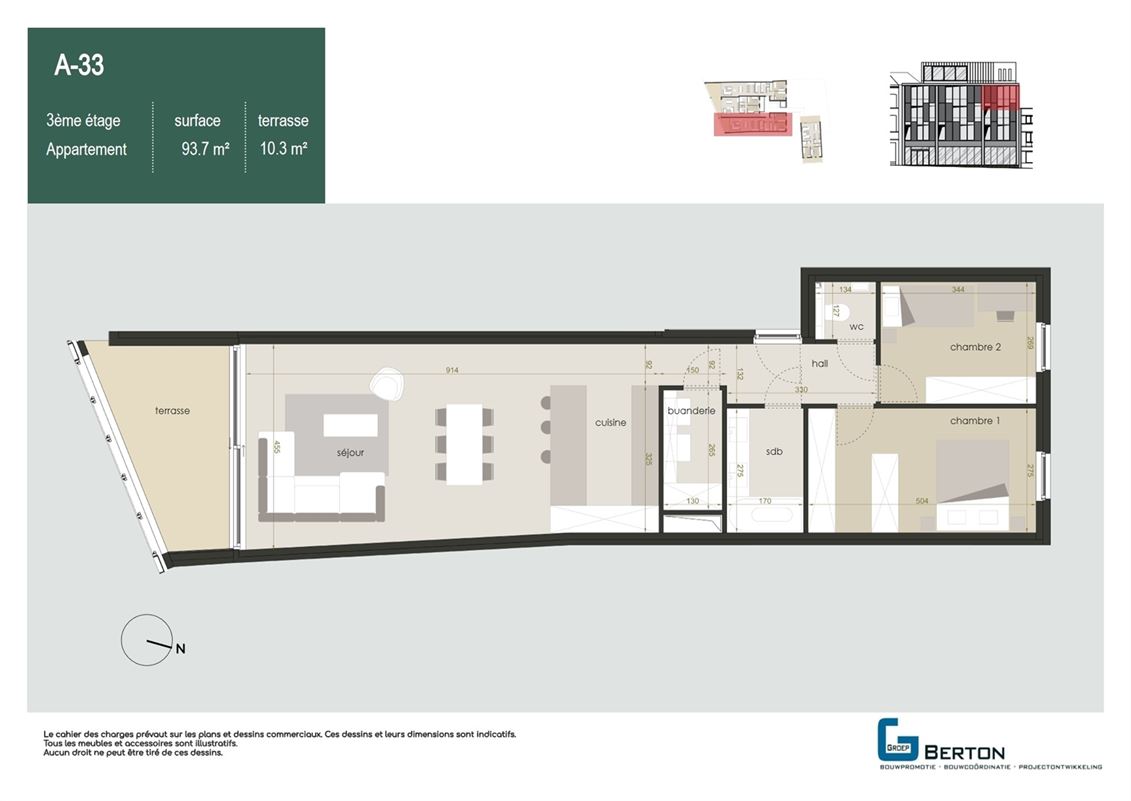 Surface totale : 112 m²