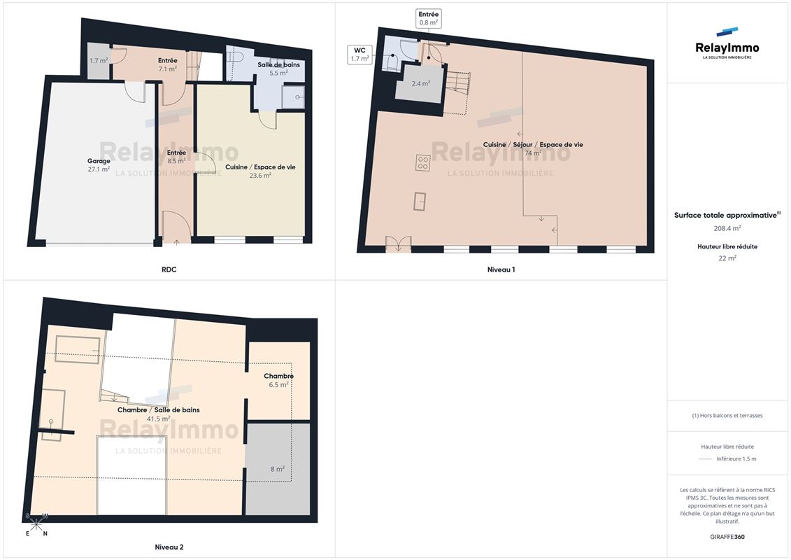 Surface totale : 208 m²