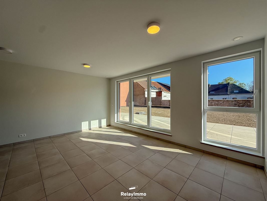 Châssis double vitrage en PVC, chauffage au sol et production d'eau chaude via pompe à chaleur, VMC double flux, arrivée et évacuation d'eau pour la machine à laver, luminaires et barres de rideaux déjà installés, excellent PEB !